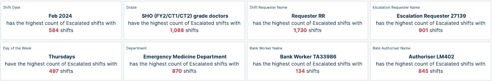 When organisations have the data available to gain a greater understanding of when and where these escalations are coming from (as shown in the graphics below), they can dedicate more targeted resources and make informed decisions to minimise the need to escalate shifts at a later stage.