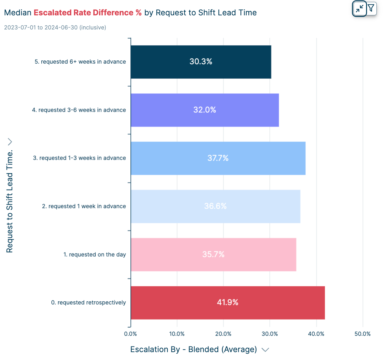To address this, Patchwork's data team has delved into the reasons behind these high escalation rates, seeking ways to predict and mitigate them - using reporting tool, Patchwork Insights. The analysis reveals a link between lead times and escalation costs, indicating that shifts booked closer to their start date tend to incur higher expenses.